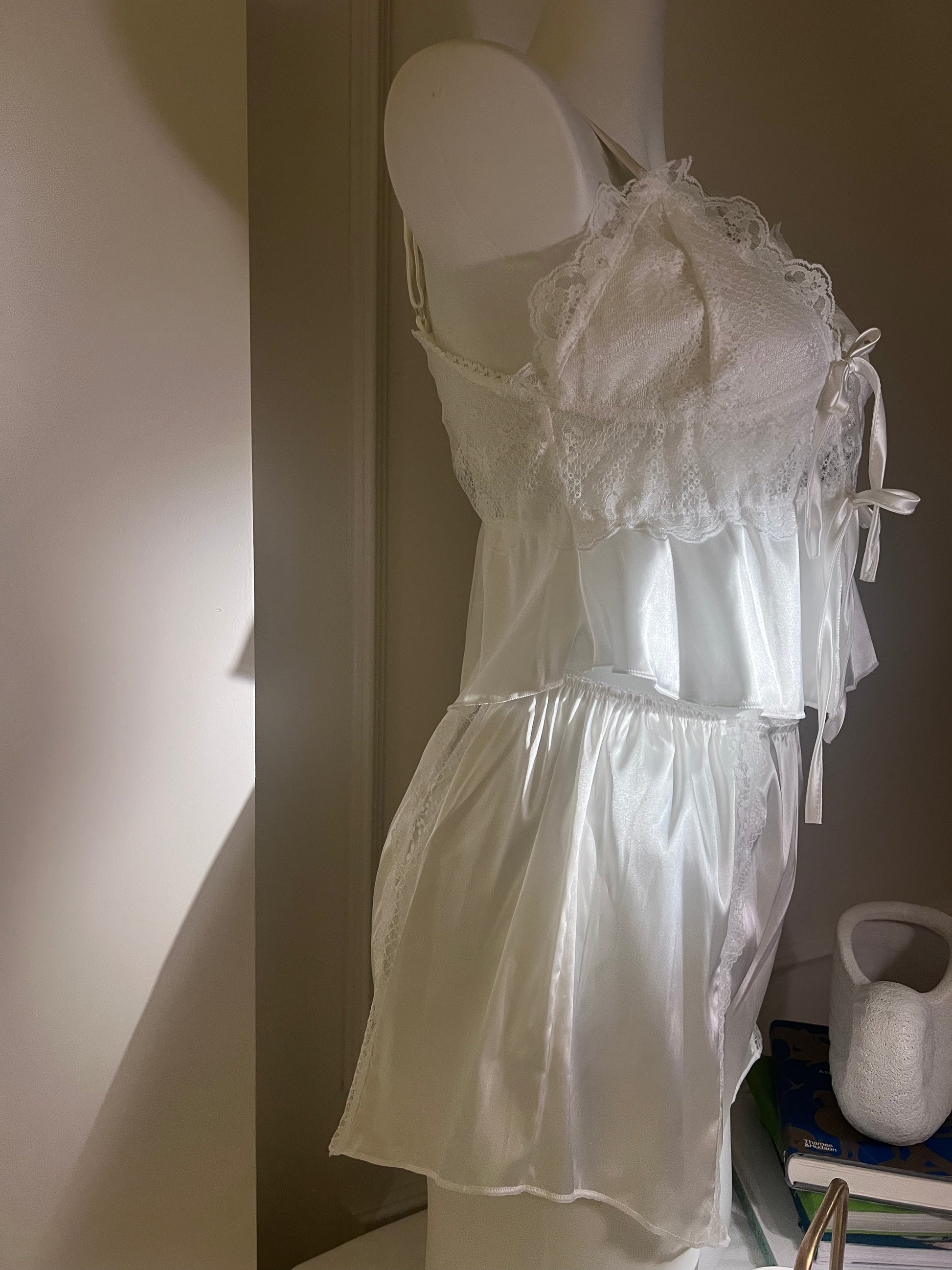- This entire set is perfect for elegantly accompanying you through the summer and also makes a great choice as a bridal robe. Additionally, the camisole can be worn as a top, allowing you to create your own unique style.