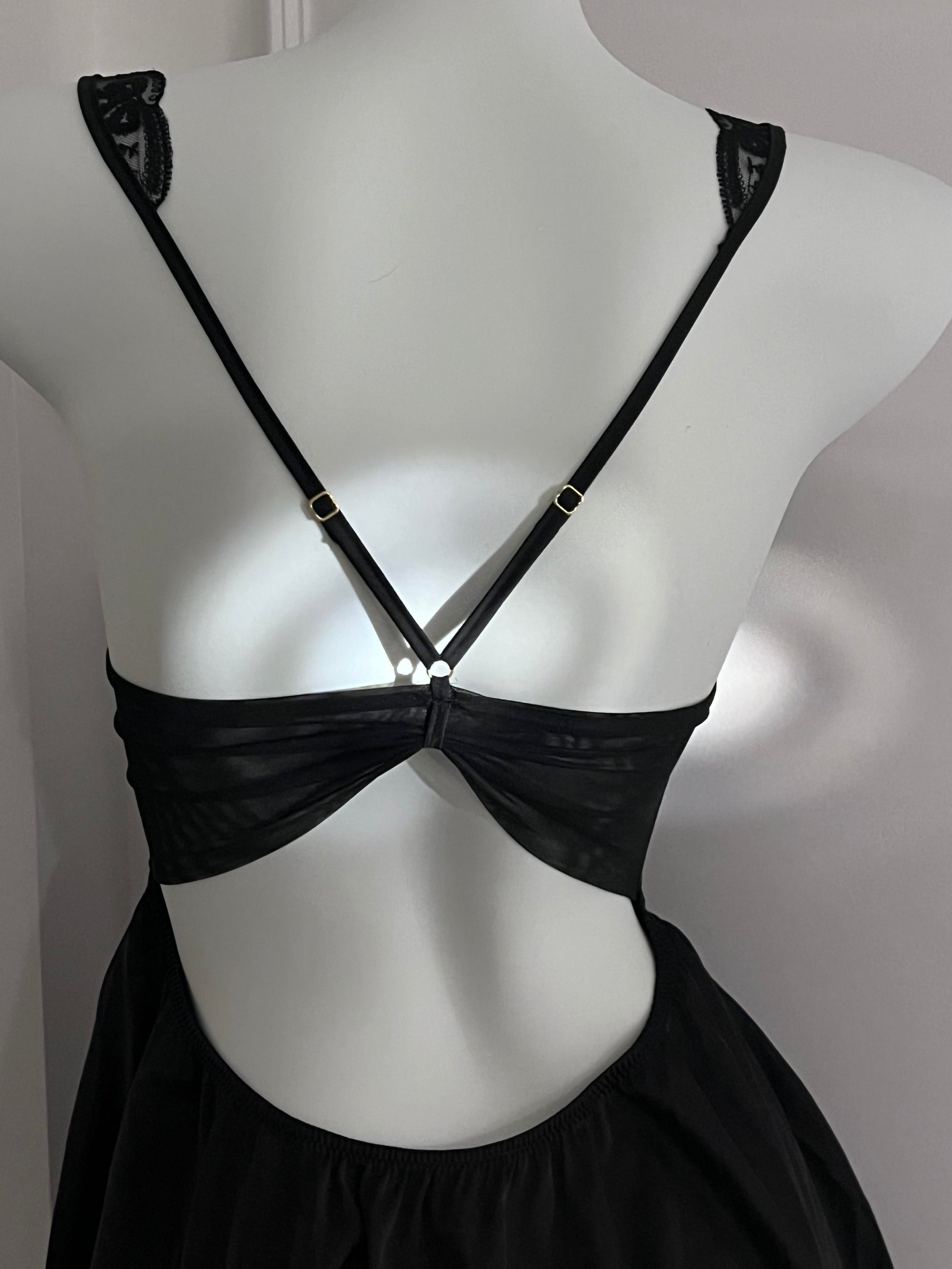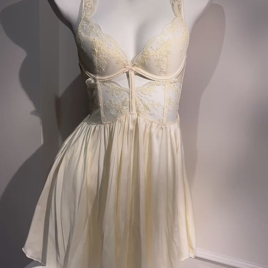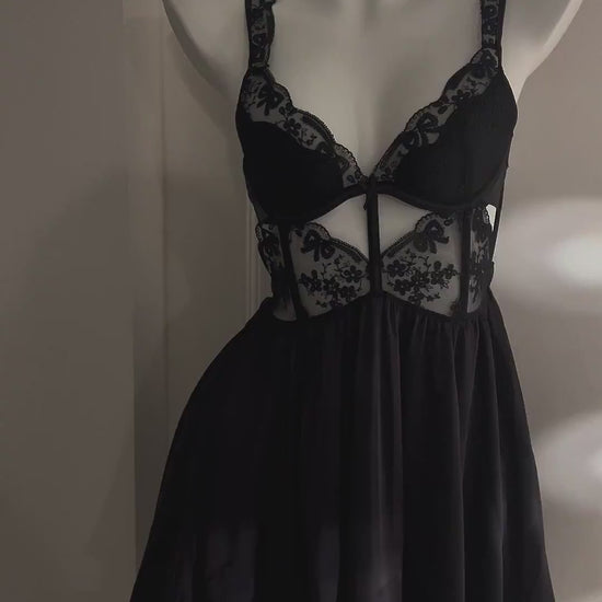 - The set features delicate black/creamy yellow lace accents, showcasing a sensual feel.